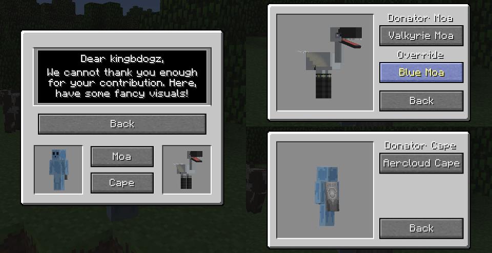 Donators to the Aether II are given two new Cape Skins, one being the Slider Cape, a cape skin based off the Slider Texture, and an Aercloud Cape, a variation of the Agility Cape design to look like it is made from Aerclouds. The Slider Cape was made by Kingbdogz and the Aercloud Cape by OscarPayn. You can donate to Aether II mod at Gilded games website.